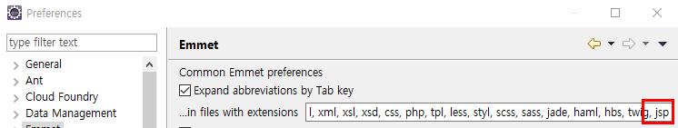 참고로 Emmet 기본설정에 JSP는 빠져있습니다.