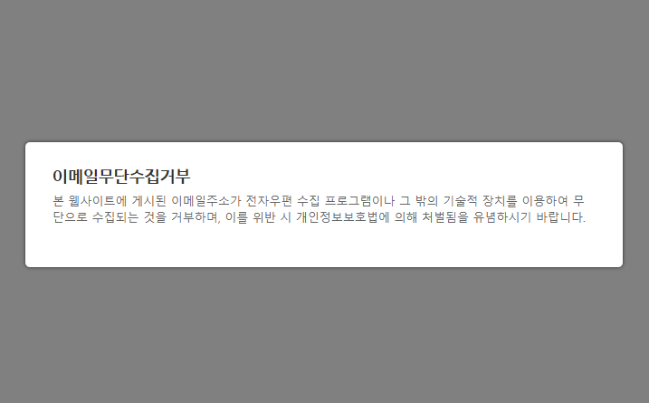 간단하게 이메일무단수집거부로 예를 들었습니다